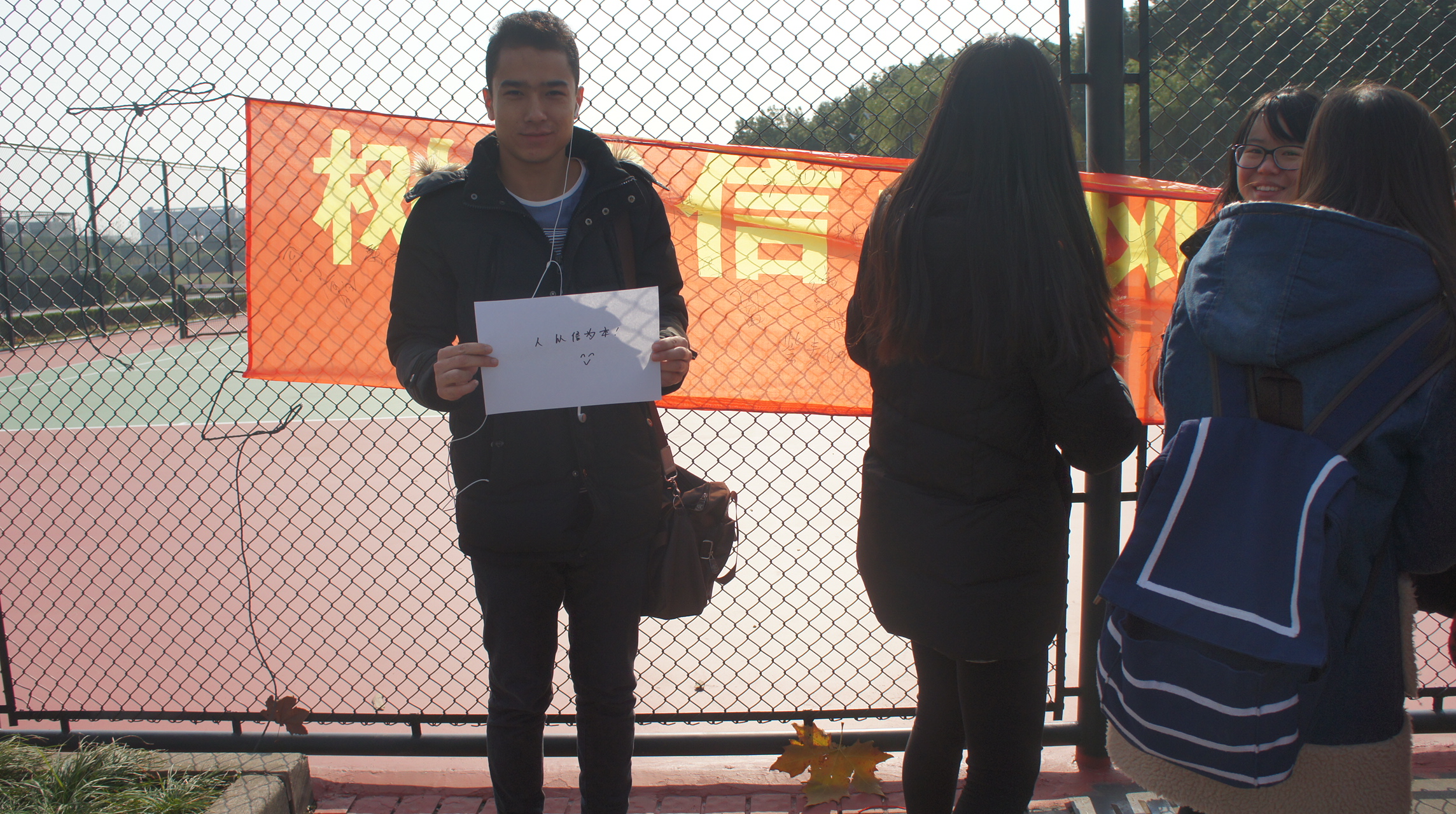 冬日暖阳高悬,寒风凛冽,而九球直播官网学生会成员却早早地来到了活动现场,为即将展开的“树诚信学风,做诚杏学子,创诚信校园”签名活动做好充足的准备。