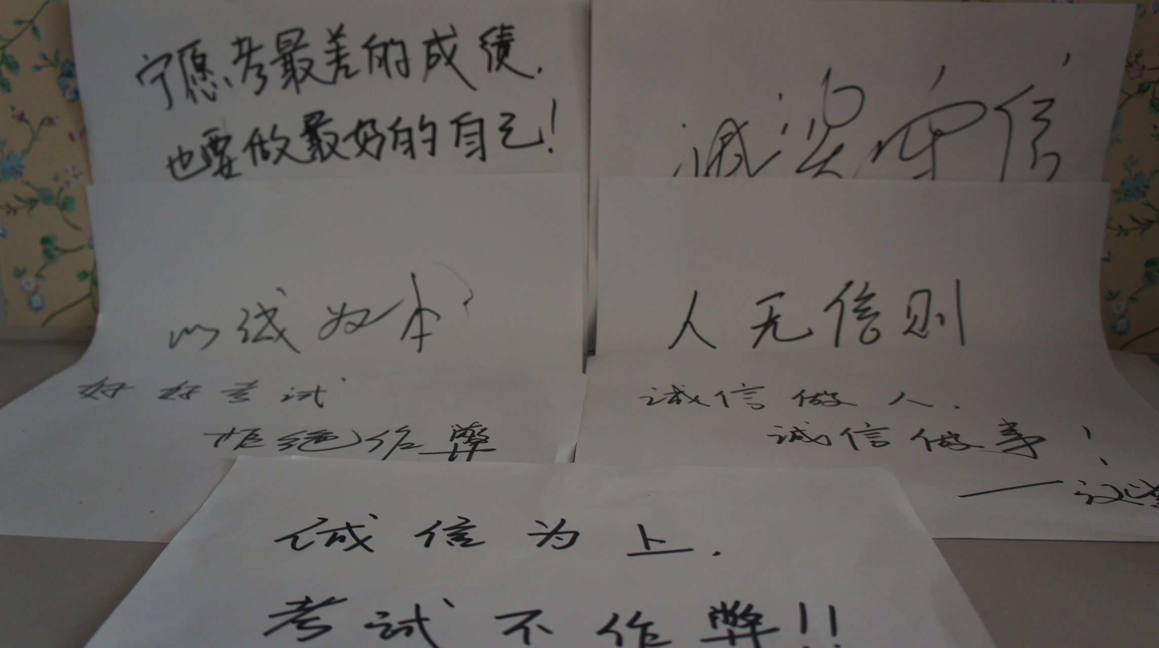 活动正式展开,陆陆续续有同学参加到我们的活动中来,在横幅上签下自己的姓名,两人一组摆出“C”和“X”的造型拍照,设计承诺诚信考试的标语并与之合照,这些行动无一不是一份对诚信的许诺。