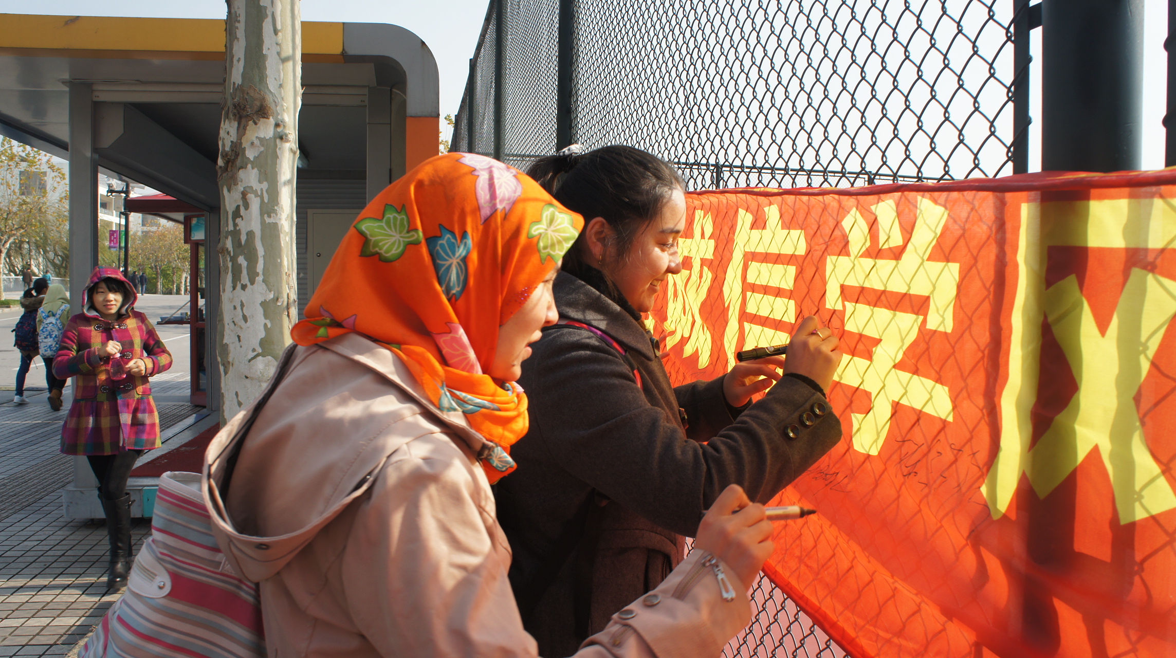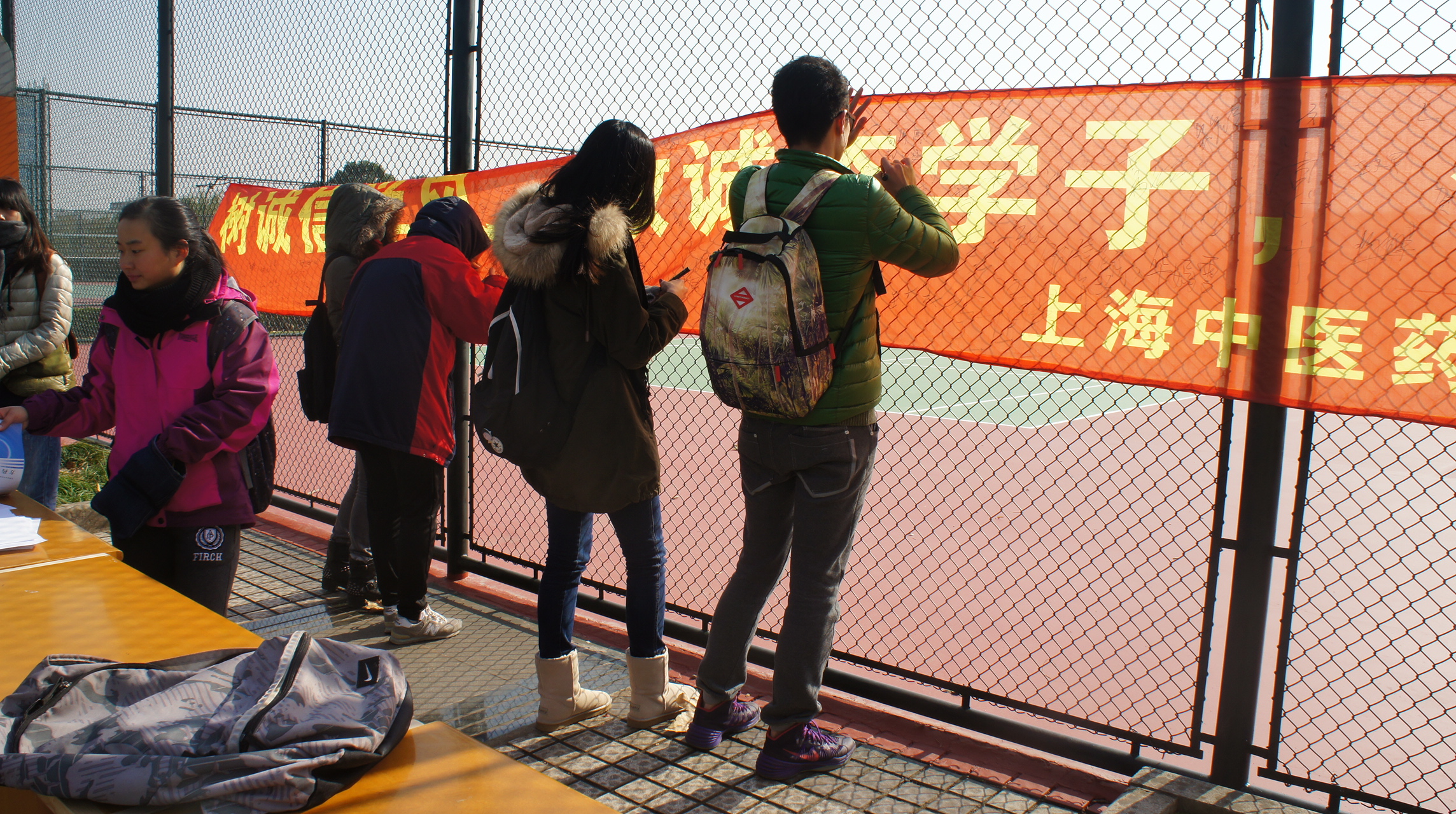 时间一分一秒的流逝,12点整,活动正如火如荼地进行着,一大批刚刚下课的同学在成员们的积极争取中,参与到活动中来。尽管寒风刺骨,同学们依旧热情不减,简短的驻足,在横幅上签上自己的名字,许下自己的诚信诺言。即便在活动临近尾声时,依然有同学加入到此次活动中来,正是同学们的积极参与,鼓舞着在寒风中坚持着的九球直播官网学生会成员。