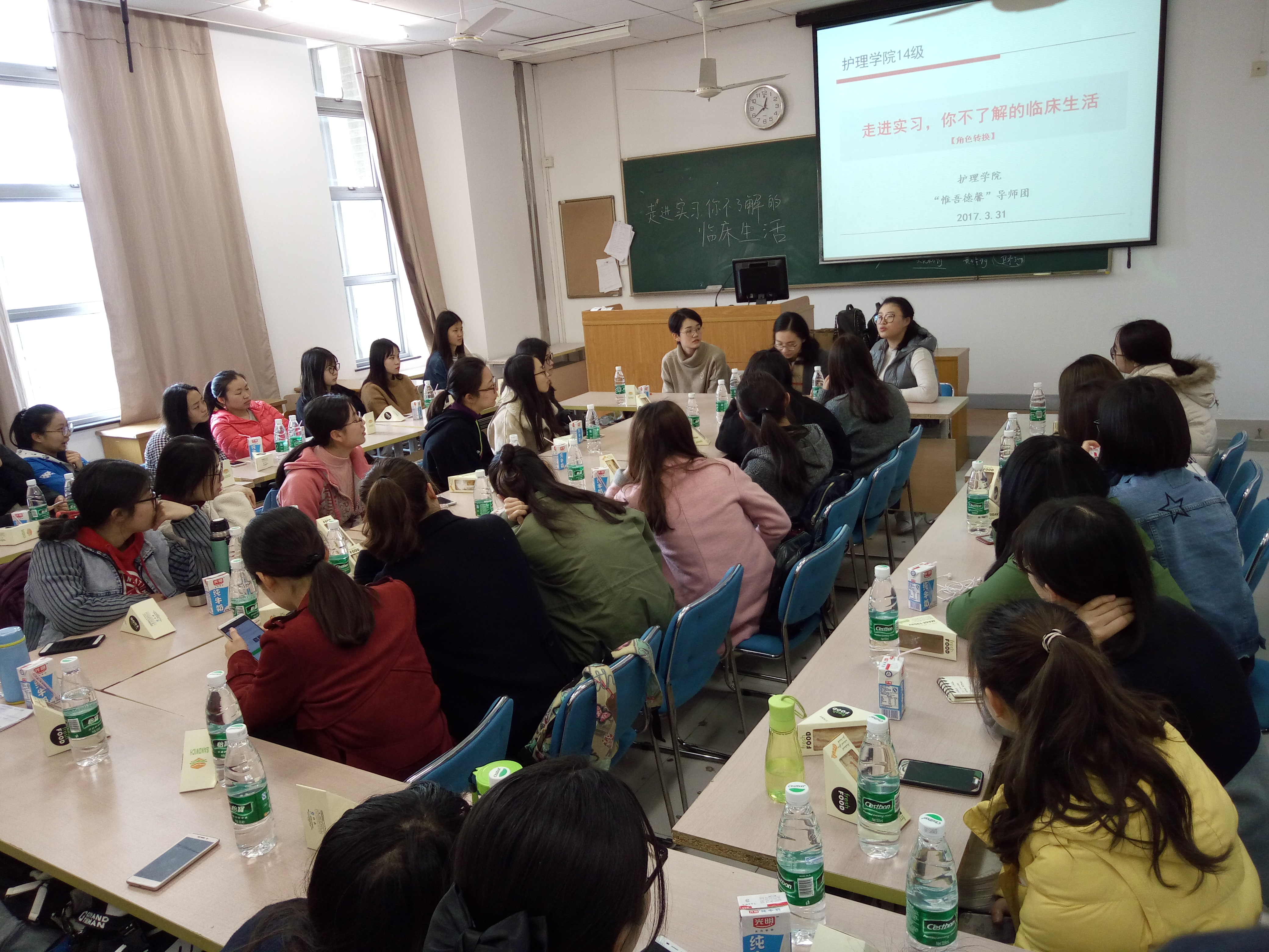 2017年3月31日中午,九球官方网站“惟吾德馨”导师团在8207开展率名为“走进实习,你不了解的临床生活”的座谈活动。邀请了13级护理本科辅导员王蒂娜、14级护理本科辅导员刘秋宏、13级护理本科的陈佳敏、王秋蕊、周雨诗学姐以及14护理本科的部分同学参与了这次活动。