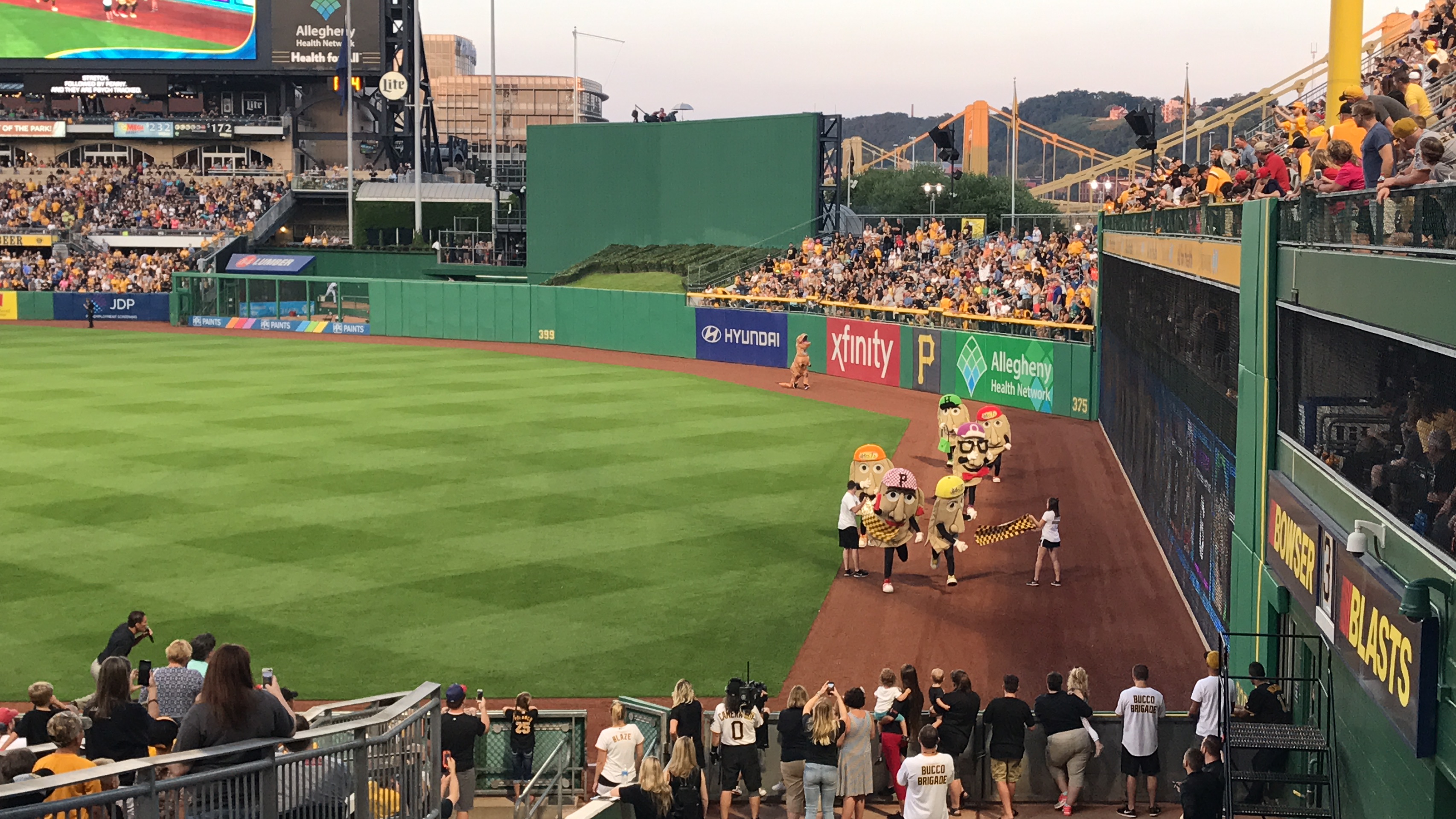 晚上的比赛过程甚为激烈,虽然匹茨堡海盗队实力不及圣路易红雀队,但是场内的粉丝不断为之加油助威。最为有趣的是比赛过程中穿插着与观众的有趣互动,比如,送球队T shirt、送棒球,球队吉祥物与观众互动、饼干人偶跑步比赛等。最后匹茨堡海盗队惜败,球迷的情绪有些低落。作为吃瓜群众,我们却深刻体会到了美国人对运动的热爱和运动场上运动员拼搏不止的精神!