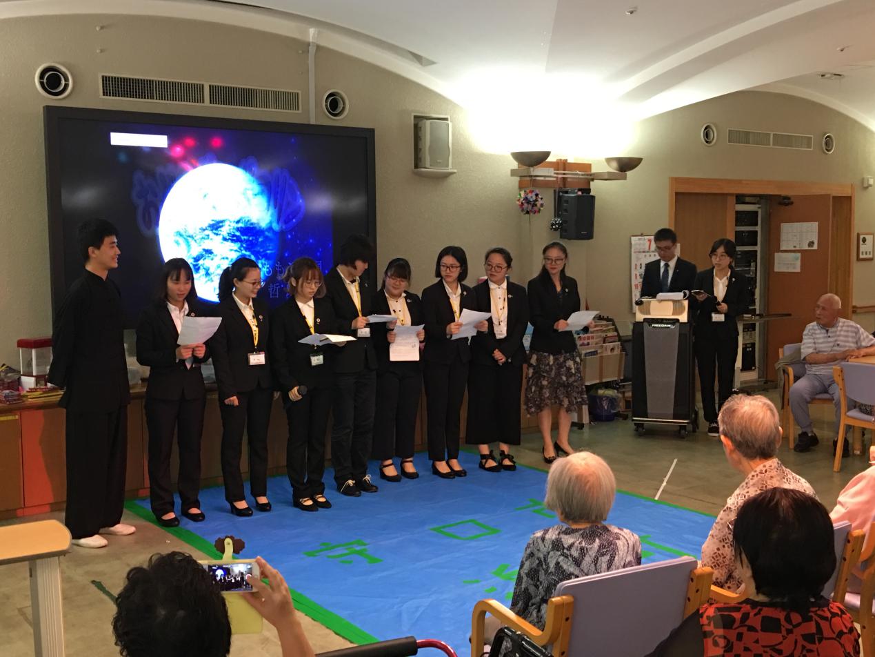松下老人院是为松下集团旗下的老人院,建院于2001年,旨在帮助老人回归家庭,独立生活,与综合医院合作,协力为老人提供周全的服务。我们了解到老人的主要愿望包括:可以独立生活以及拥有家的归属感。松下老人院致力于帮助老人尽快达到能够回归家庭的状态,从入院到出院一般为期三个月,期间组织形式多样的活动,使患者在快乐中进行康复训练。为丰富日间照护中心老人的生活,我们也准备了刚柔并济的太极剑、古典舞、岁月金曲以及大合唱的表演,部分老人跟着节拍唱起歌来;在游戏环节,让老人们都参与了进来。此次活动锻炼了我们组织老人活动的能力。