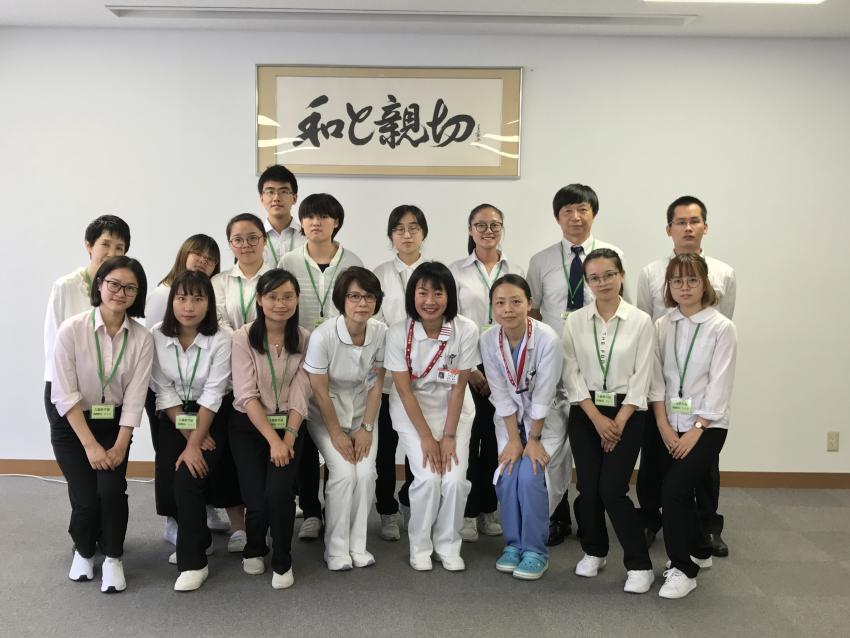 我们的课程设置分为看护学概论、老年看护学、精神援助论三个板块。第一节课上丰田校长为我们介绍目前日本看护的现状,她提出了 “看护是让人幸福的职业”这句贯穿我们整个研修的格言。之后的每一位专业课授课老师都结合了日本社会的现状,并和中国的国情作比较,以对比和发展的眼光来介绍我们的护理专业。松下老人院、清风会茨木病院、茨木精神病院的实践参观让我们的学习不只是纸上谈兵,而是更加有目的性地交流体验。可以说我们的研修学习是一场“视听盛宴”,既学习了课堂里的基本专业知识,又感受了日本病院、老人院临床一线的管理与工作模式。