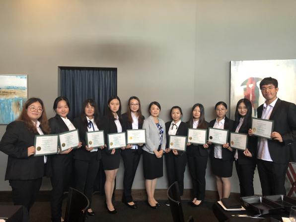 在8月1日,我们在见习所在的医院进行了总结汇报,我们分成三个小组,从各方面小结了我们在医院为期三周的见习生活。其中有一组,从psychology、operation、environment和teamwork四个角度进行总结,取了这四个英语单词的首字母拼出了“poet”这个单词,并告诉大家:护理如诗,我们都是诗人,而患者就是听诗的人,我们要心怀爱和使命感去完成护理操作。在8月2日,密歇根州立大学邀请我们参加了晚宴,还有一些我们在医院遇到的老师,老师们为我们颁发了此次访学项目的毕业证书,并合影留念。