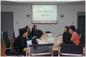 中本贯通护理专业是我校与健康医学院合作开展的七年一贯式应用型人才培养模式,首届学生已于今年9月进入我校开始本科阶段学习。研讨会首先反馈了中本贯通护理专业学生入校后的学习和生活情况;建议在中职阶段学习中强化相关课程的教学并注重学生自主学习能力的早期培养。随后,双方专业课教师就护理专业课程进行了充分的沟通,包括课程授课情况、学生的学情特点等。讨论中双方教师认为应建立相关课程教研组开展集体备课,开放《护理学基础课程》APP手机课程等,共享教学资源,以实现护理专业课教学内容的中职与本科阶段的无缝对接。研讨最后达成共识,在课程教学方面搭建教师合作平台,开展课程教学标准的研讨及人才培养方案的专家持续认证工作,进一步完善专业培养方案及课程教学标准。在学生管理工作中体现“贯通”,早期融入,定期开展大学生活引导、素质讲座等活动。健康医学院方亦表示,双方可共建医护人文共育平台,加强师生互动。