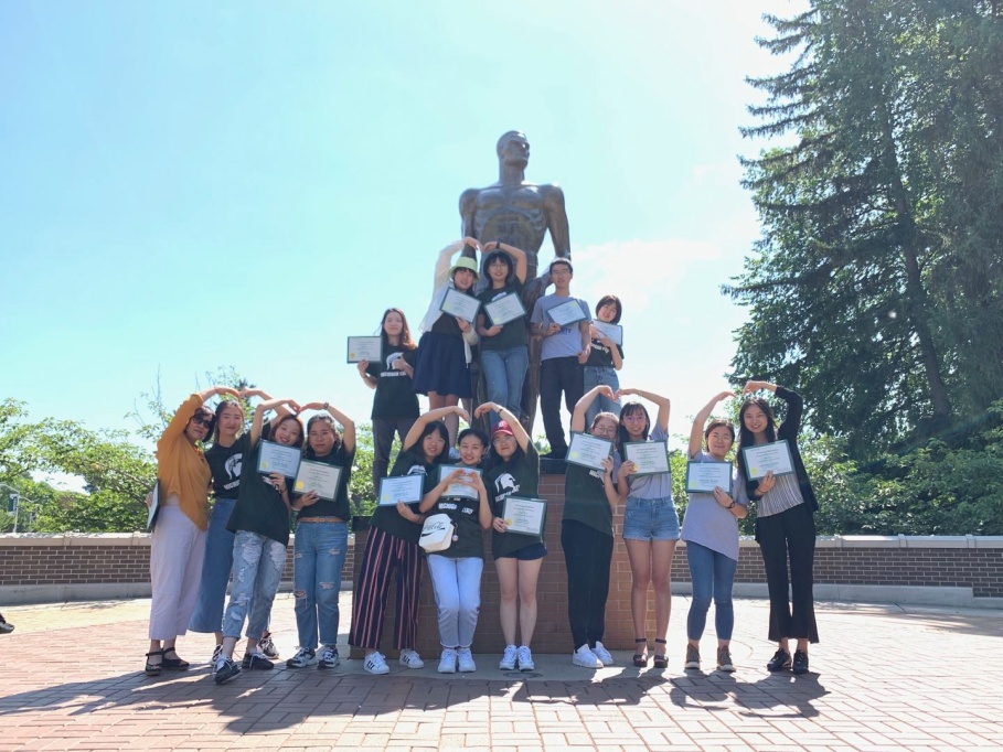 伴随着最后一周丰富的参观经历,访学项目的终点也临近了。拿到毕业证书后,我们在MSU斯巴达勇士雕塑前留下了这个夏天最美好的合影!