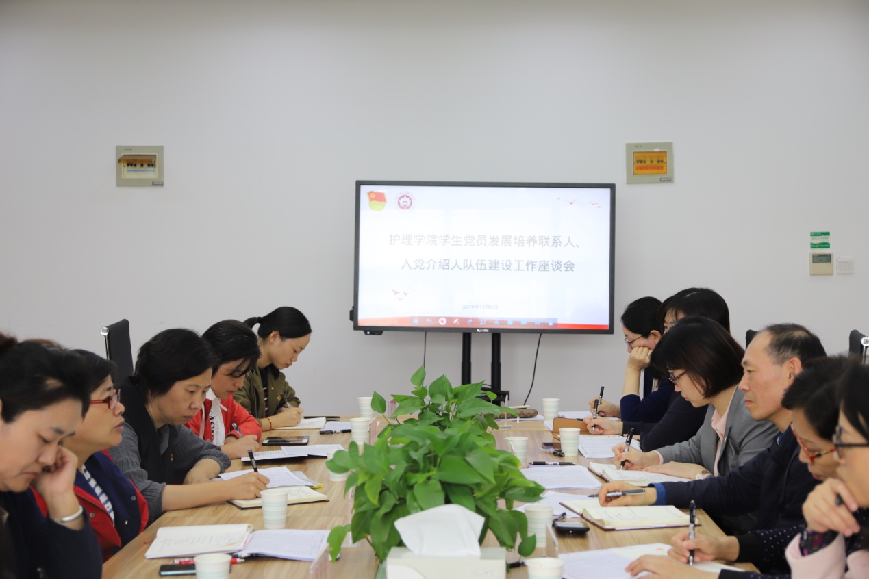 2019年11月6日,九球直播官网党总支在9118会议室召开“九球直播官网学生党员发展培养联系人、入党介绍人队伍建设工作座谈会”,学校组织统战党支部党员、九球直播官网党总支全体委员、九球直播官网各党支部书记、青年教师班主任、辅导员及学生代表出席本次会议。