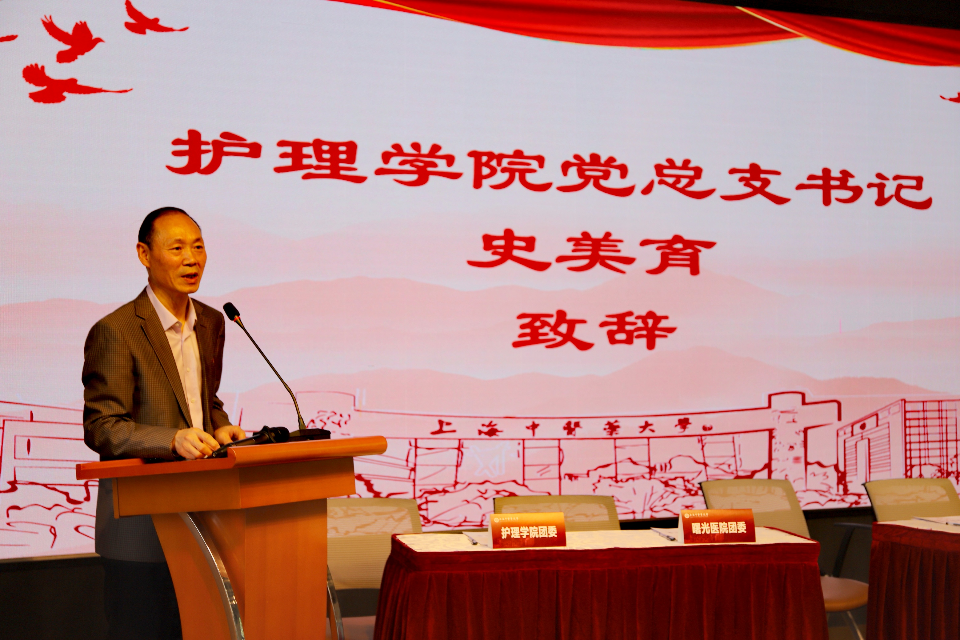 最后,曙光医院党委副书记姚政对两院共建表示热烈祝贺,他提到党支部共建标志着两院护理师生开展深度合作的起点,今年是中国共产党中国共产党建党一百周年,站在两个一百年的交汇点,双方要以钉钉子精神坚定不移抓好各项工作的落实,以党建带动团建,医院对接学院,临床党员对接学生党员。在全体党员、团员中广泛开展党史学习教育,努力把广大青年更加紧密地团结在以习近平同志为核心的党中央周围,为实施“十四五”规划、实现2035年远景目标贡献青春力量,以优异成绩庆祝建党100周年。