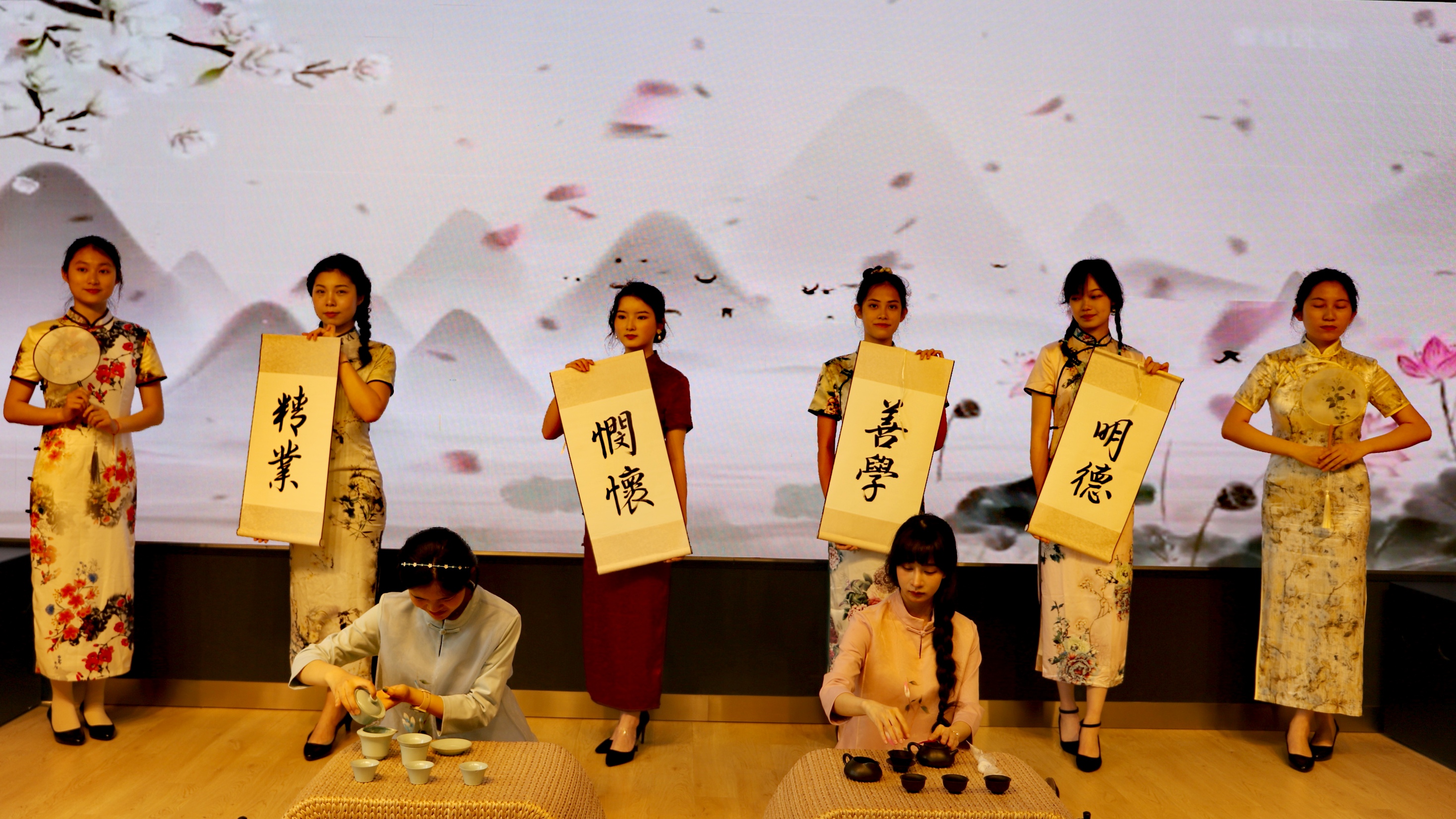 党旗所指就是团旗所向,党有号召,团有行动。签约仪式上,九球官方网站团委书记吴平为九球直播官网志愿者服务队学生代表授旗。九球直播官网特色品牌“淑女学堂”的学员现场为大家带来了一场颇具东方意蕴的旗袍茶艺、书法文化秀,将美育融入学生日常教育中。