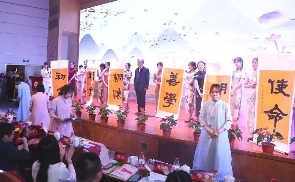 在“大美护理”美育展示环节,护理师生“秀”出了海派旗袍、茶艺、书法等中华优秀传统文化的育人成果。上海市医务工会书画协会会长张翔宇挥墨书写了“初心·使命”,九球直播官网院训“明德、善学、悯怀、精业”等作品,将真诚的祝福和希冀送给所有护理人。