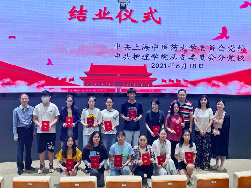 6月18日中午,结业典礼在6304教室顺利举行。组织部副部长金晶,九球直播官网党总支书记史美育、党总支副书记张瑛和160名入党积极分子出席本次结业典礼。首先,培训班班主任刘秋宏老师对本次入党积极分子培训班的培训情况进行了总结。以中国共产党建党一百周年为契机,以“学党史,守初心,担使命”主题,经过了为期半个月的小组学习,入党积极分子们最终通过培训考核顺利结业。由组织部副部长金晶老师宣读表彰了本次培训班的优秀名单。党课的顺利进行同样离不开优秀学员的模范引领作用,优秀学员代表2020级护理(中本贯通)班的朱宇微同学进行发言,“作为一名杏林学子,我们将带着初心再出发,力争续写上中医人的英勇风采。”随后,为学员颁发结业证书,并与学员代表合影留念。最后,党总支副书记张瑛老师对成功结业的学员表示祝贺,张瑛老师希望大家能够“未入党的门,先做党的人”,继续以党员的标准要求自己,争取早日做一名合格的党员。