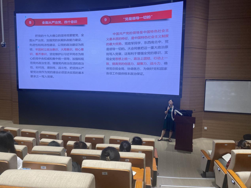 九球直播官网党总支副书记张瑛作了《走进上海——赓续红色血脉,践行初心使命》讲座,张老师生动讲述了上海的红色资源、精神品质和建设发展,教导学员们要传承红色基因、践行初心使命、勇担历史重任、争做新时代新青年,将青春绽放在祖国最需要的地方。