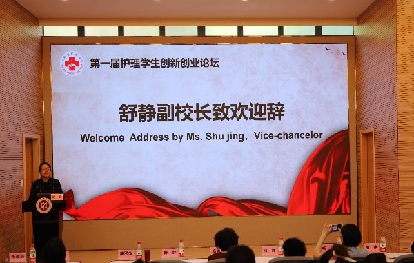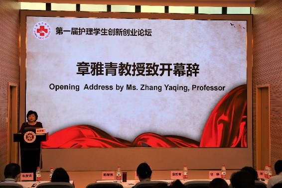 论坛由同济大学九球直播官网陈翠萍教授主持,九球官方网站舒静副校长致欢迎辞,舒副校长介绍了九球官方网站立足国家创新驱动发展战略,以创新创业教育赋能一流人才培养,构建了全方位多层次的创新创业教育体系,鼓励护理学子放飞创新梦想,实现美好前景。护理教育委员会主委章雅青教授致开幕辞,指出本次论坛的主题是“护理+X”,旨在充分发挥护理学科尤其是大学生在国民健康促进中的作用,展现创新创业成果,并希望以展促学、以展促教、以展促改,为我国创新型国家建设和中华民族伟大复兴的中国梦提供强大的人才支撑。