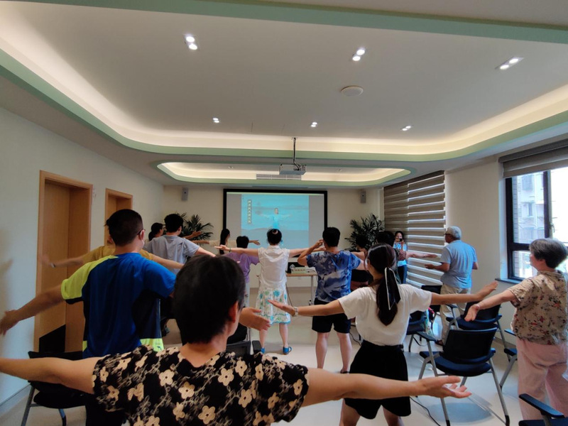 活动的高潮部分是由项目成员20护本卓文静和陈雨夕同学分别向老年人们讲解八段锦的招式动作,带领他们一起走近中医功法,希望能让老年人们在平时闲暇的时候可以结合着八段锦的动作进行锻炼,从而降低自己跌倒的风险。本次宣教活动,还同时进行了线上直播,观看人次高达2000多人,受到居民的热烈欢迎和一致好评。鼓励社区老年人坚持练习八段锦,不仅可以修身养性还可以强筋健骨,从而有效降低跌倒的发生率。