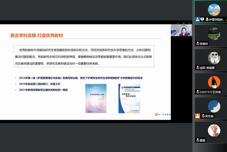 此次培训会站位高、内容全,旨在强化导师立德树人职责,加强思想政治素养,增强投身教书育人的理想信念,提升专业指导能力。也希望在大家的共同努力下,护理硕士研究生的培养质量不断提升,培养出更多优秀的护理人才,为健康中国建设贡献力量。