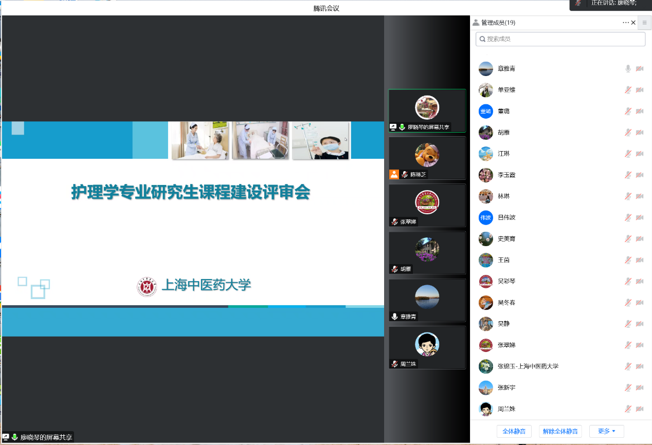 吴彩琴、吴静、王茵、李玉霞四位老师对所主讲的研究生课程从课程设计、教学目的、教学内容与学时安排、教学方法、考核要求等方面进行汇报陈述。三位专家就课程建设中存在的问题进行点评。专家指出,课程资源较为丰富,但要注意研究生课程要契合研究生培养目标,突出护理学专业的学生特点。研究生课程内容侧重研究进展,体现探索性,应充分发挥研究生自主学习和反思的特点,有别于本科生教学。此外,建议各课程完善过程性评价和终末性评价内容。