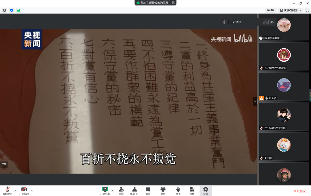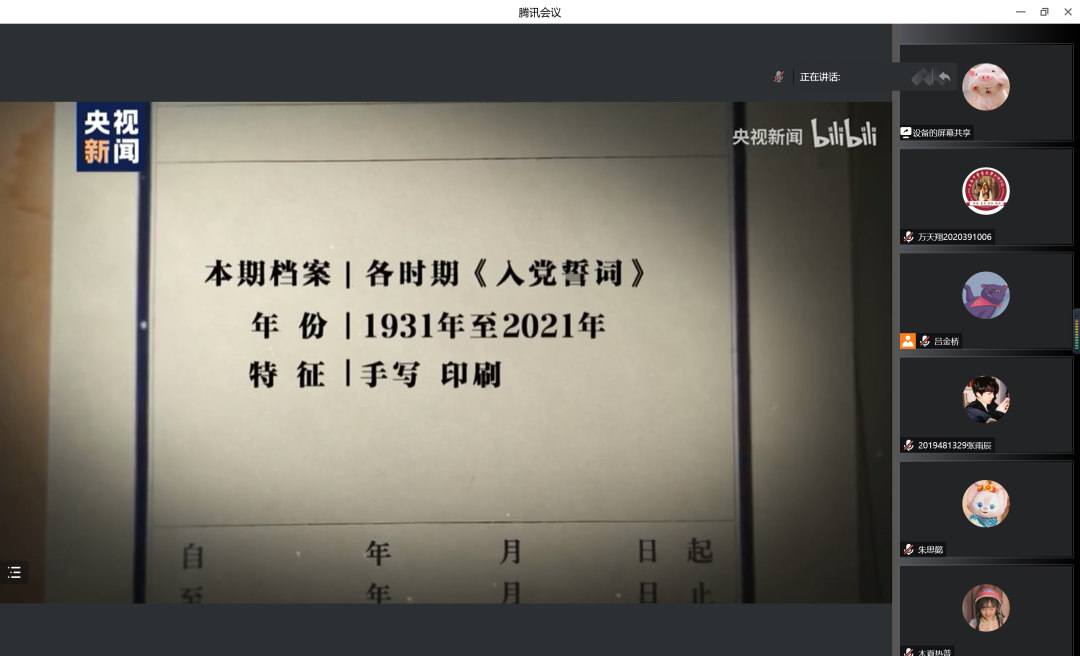 本次主题党日活动主要学习了入党誓词的形成历史,观看了《红色档案》系列视频。了解到入党誓词大致经历了中国共产党成立后到土地革命时期、抗日战争和解放战争时期、中华人民共和国成立后这几个时期。