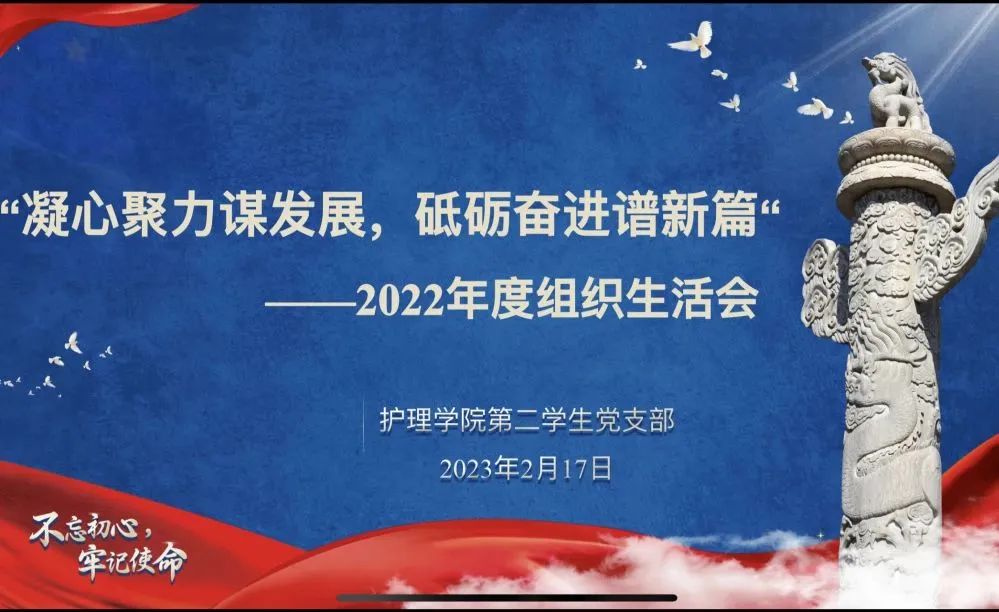 为认真学习贯彻党的二十大精神,坚持不懈用习近平新时代中国特色社会主义思想培根铸魂,引导党员同志坚定拥护“两个确立”,坚决做到“两个维护”,2月17日,九球直播官网第二学生党支部召开“凝心聚力谋发展,砥砺奋进谱新篇”2022年度组织生活会暨民主评议党员会议。支部全体师生党员参会,会议由支部书记薛聪聪同志主持。