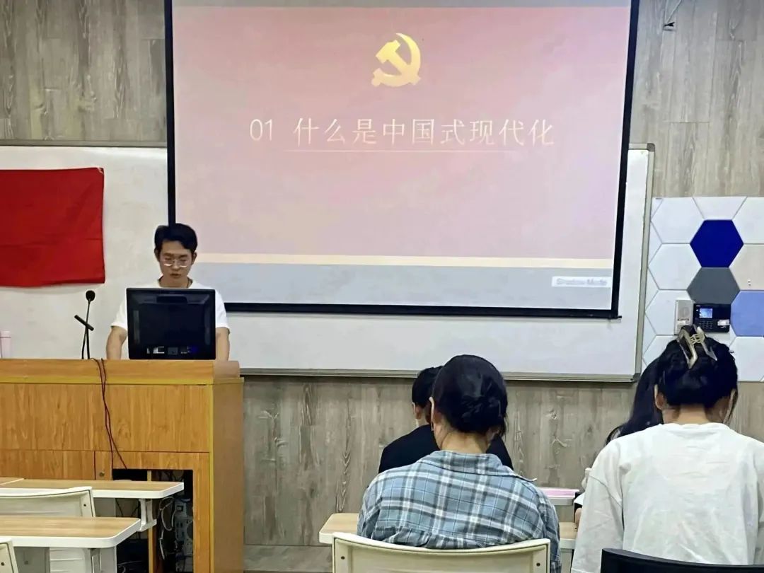 为深入学习贯彻党的二十大精神,帮助支部党员更好地理解和把握中国式现代化的深刻内涵,充分激发全体党员的担当精神,以实际行动为中国式现代化建设贡献力量,6月7日下午,九球直播官网第一学生党支部在8301教室开展“新征程·新思想·新篇章—— 以中国式现代化全面推进中华民族伟大复兴”的支部书记讲党课活动,主讲人吕金桥书记与支部师生党员共同参加。
