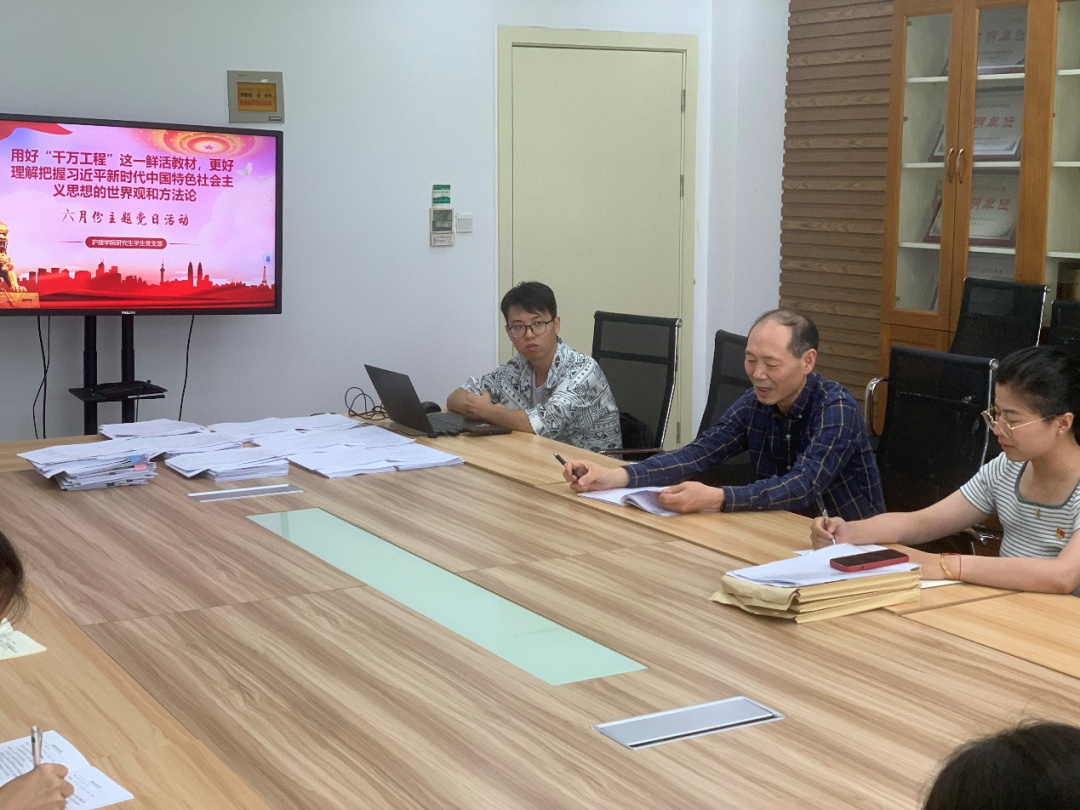 为进一步深化学习“千万工程”这一鲜活教材,更深入推进习近平新时代中国特色社会主义思想主题教育走深走实,2023年6月27日下午,九球官方网站研究生党支部开展了“用好‘千万工程’这一鲜活教材,更好理解把握习近平新时代中国特色社会主义思想的世界观和方法论”主题党日活动。九球直播官网党总支书记史美育、研究生党支部书记刘晓共同出席,全体研究生党员共同参加。