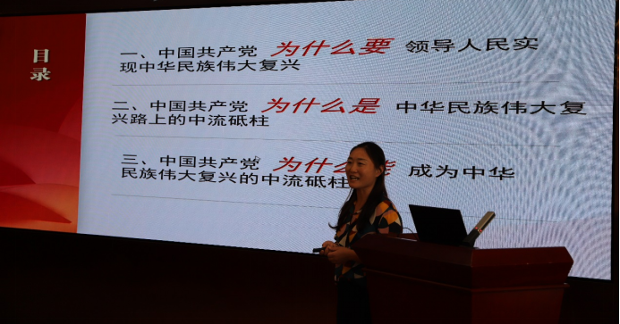 开班仪式后,马克思主义学院张菊老师以《复兴路上的中流砥柱——中国共产党为什么“能 ”》为题。张老师围绕三个方面出发,一是从党的性质和宗旨为出发点,讲述了中国共产党为什么要领导人民实现中华民族伟大复兴;二是从中国共产党在不同历史时期完成救国、兴国、富国、强国的历史过程,陈述了中国共产党为什么是中华民族伟大复兴路上的中流砥柱;三是结合中国共产党有外部监督和内在自律的优势,论述了中国共产党为什么能成为中华民族伟大复兴的中流砥柱。同时,张老师要求入党申请人们要深刻认识和把握中国共产党百年奋斗的初心和使命,紧跟党走,携手并肩,脚踏实地,以崭新的姿态和良好的精神风貌,勇敢迎接新时代的洗礼,迎接未来的挑战。